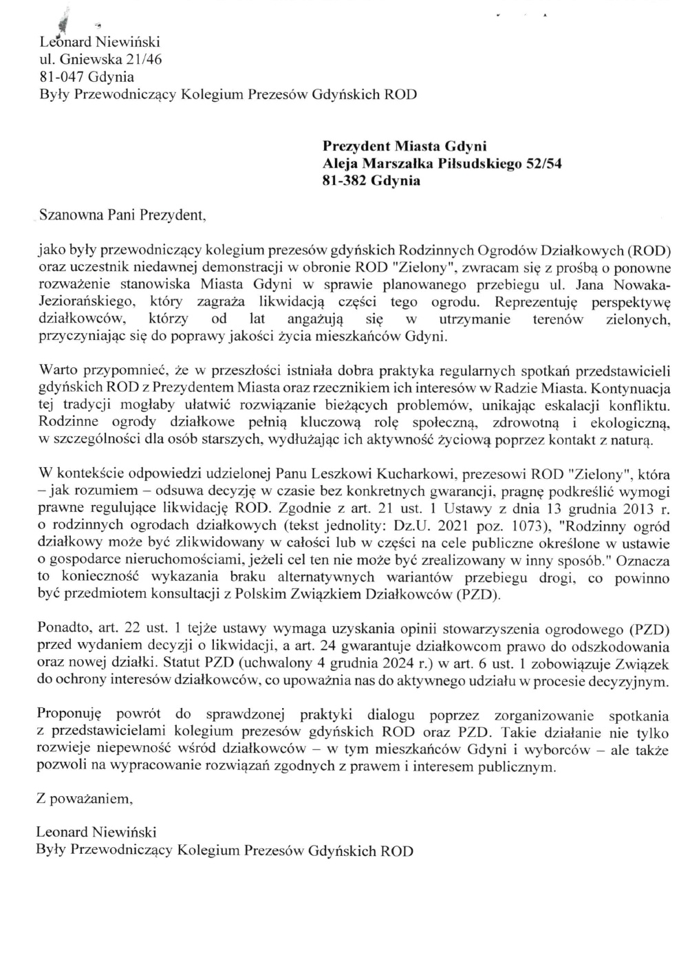 Planowana ulica przez ROD "Zielony" w Gdyni